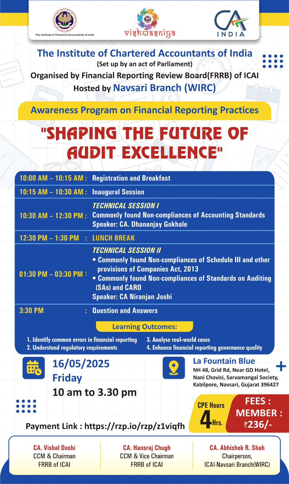 - Awareness Program on Financial Reporting Practices at Hotel La Fountain Blue, Navsari, Gujarat on 16th May 2025